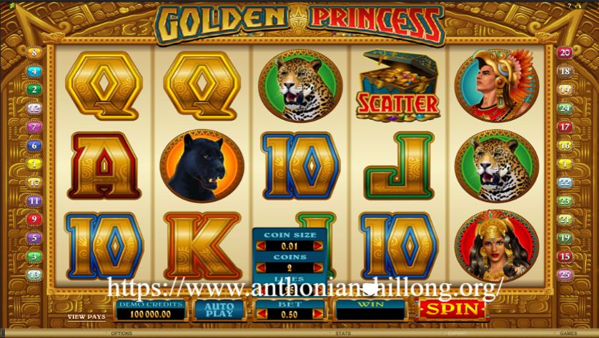 Setiap putaran di Golden Princess menghadirkan keindahan dunia kerajaan yang penuh kilauan emas.